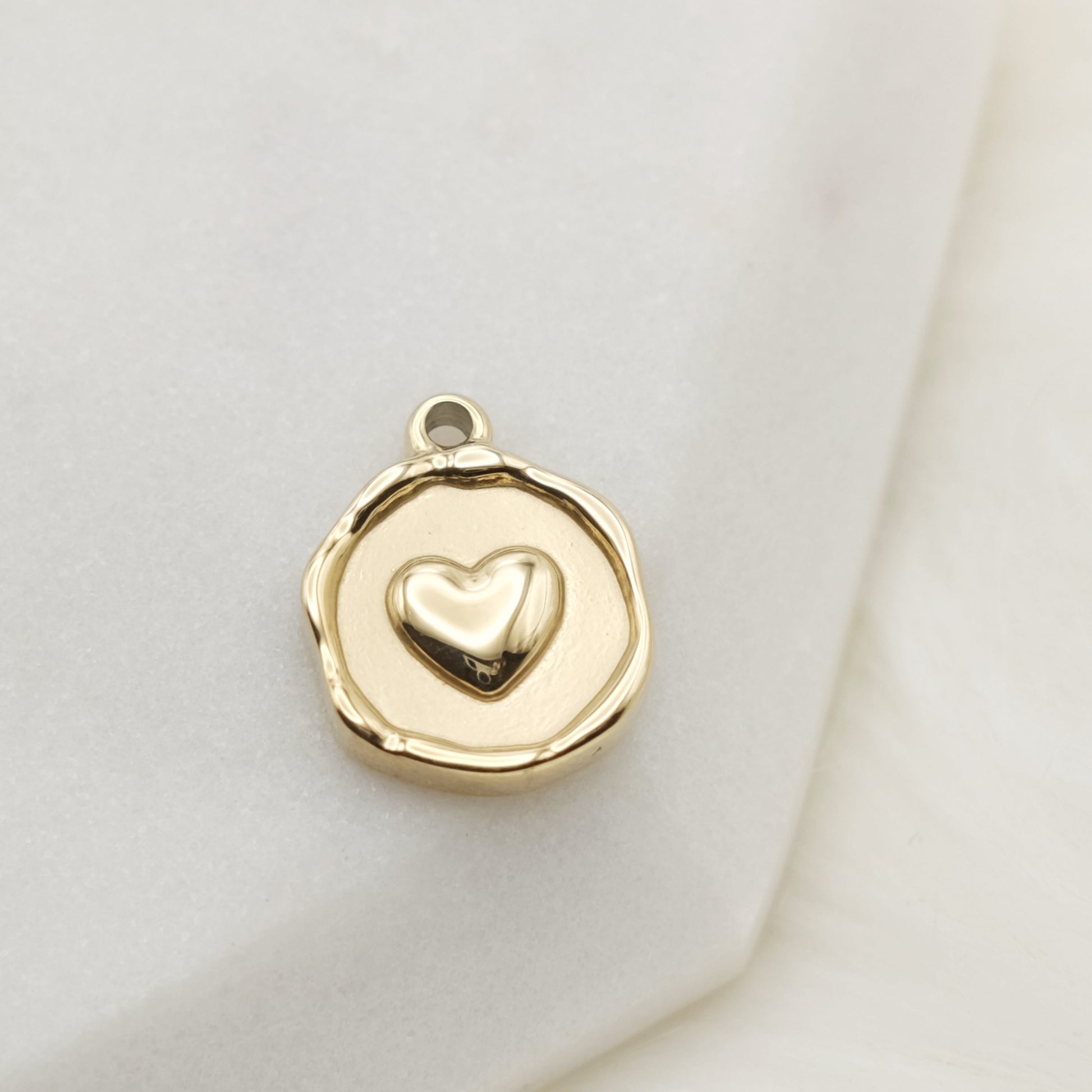 Create endless combinations with this 14k gold plated Freeform Disc Heart Charm and let your charms style your versatile vibes!