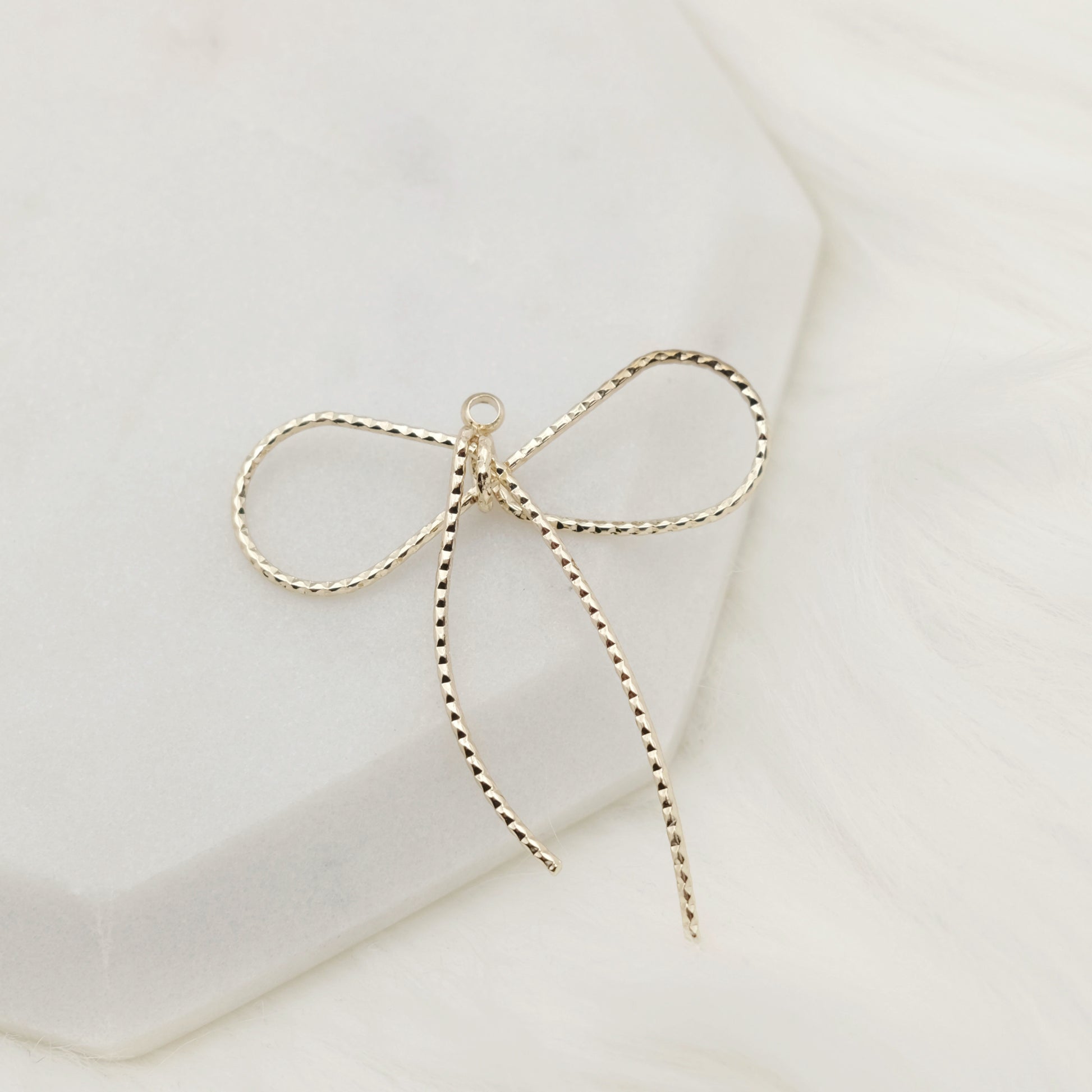 Make a statement with the 14k gold filled Jumbo Graceful Thread Charm. Its bold yet elegant design turns your swags into standout pieces, perfect for those who love to combine sophistication with a touch of drama.